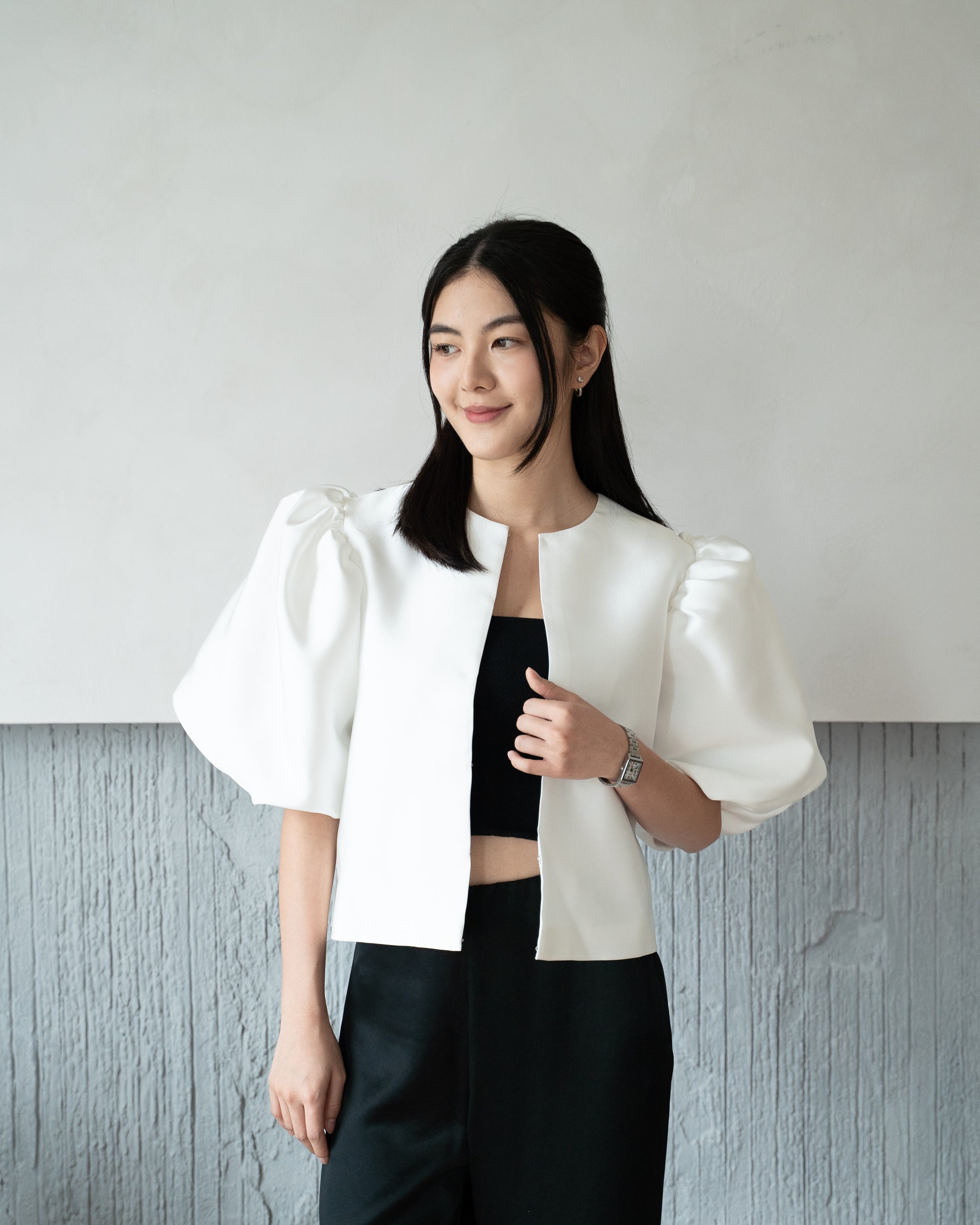 The Liana Blouse is a versatile wardrobe essential that doubles as both a blouse and a lightweight jacket, seamlessly blending style and functionality. Featuring voluminous balloon sleeves and a clean, boxy silhouette, it strikes the perfect balance between structured elegance and relaxed charm. The sleek front closure and minimal design enhance its versatility and timeless appeal.